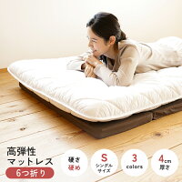 「高反発マットレス厚さ10cm」は、敷布団なしでもしっかりとした寝心地が魅力です。高反発ウレタン使用で弾力があり、弾むような感触で寝返りもで楽々。マットレスの厚みがあるので狭くてベッドが置けない部屋や、一人暮らし用、学生用の寝具にぴったりです。