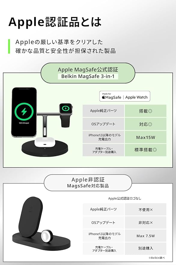 - MagSafe 3-in-1磁気ワイヤレス充電器|最大出力15Wの急速充電!