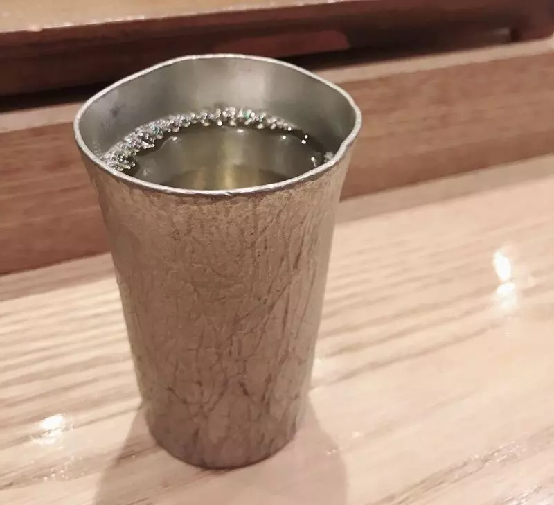 お料理だけでなくお酒の種類も充実していて、日本酒は錫の器に注いでいただきます。