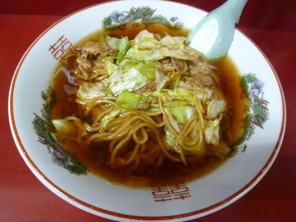 縮れ麺にあっさりとした味わいのスープがよく絡み、焼きそばとラーメンの魅力を両方同時に堪能できるのがポイントです。食べ進めていく間にソースとスープが混ざり合い一体感が出てくるので、味の変化も楽しみながら食べるのがおすすめ。