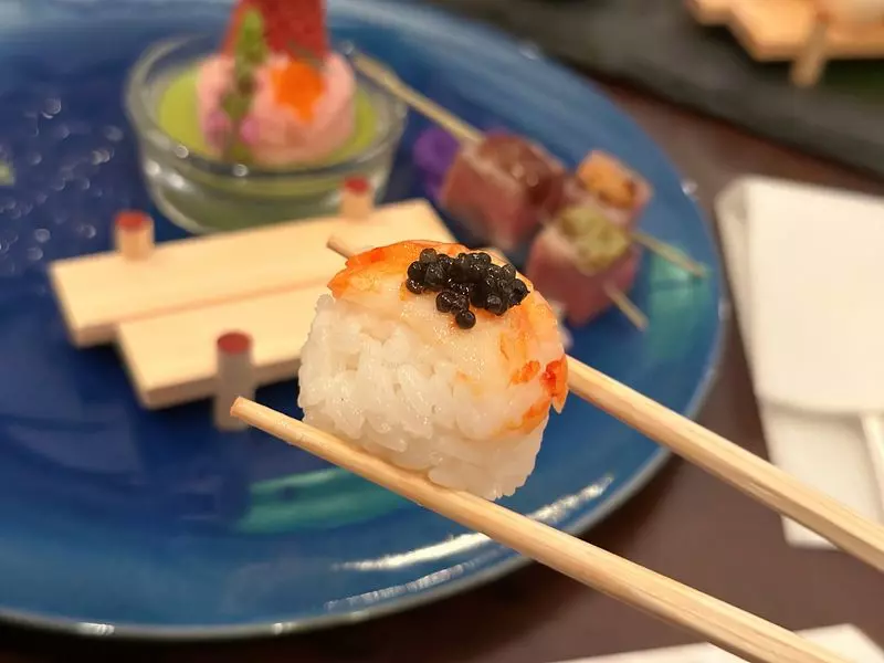 さらに二品目のエビはトップにキャビアがあしらわれており、とにかく華やか!口へ運んでみると、これまた塩味がちょうど良い塩梅。