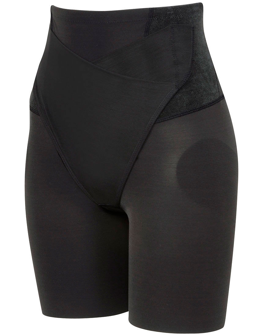 お腹と骨盤をサポートするパネルとラインで引き締めながら、ウエストの構造が苦しさを和らげるのがポイント。座った時の足の付け根への圧迫も軽減していて、補正ショーツながら窮屈さが少ないのがうれしいアイテムです。