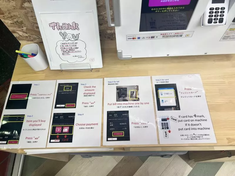セルフレジでの支払い方法が画像とともに紹介しているポスターも置いてあるため、利用方法がわからない方もスムーズに購入できるはずです。