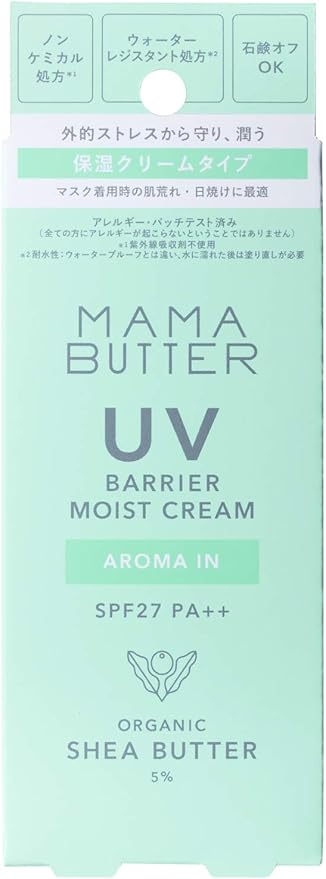 『ママバター』の「UVバリア モイストクリーム」は、天然由来の保湿成分であるシアバター(※1)配合した子ども用日焼け止めです。シアバターで肌にうるおいをあたえながら、紫外線によるUVケアができるアイテム。