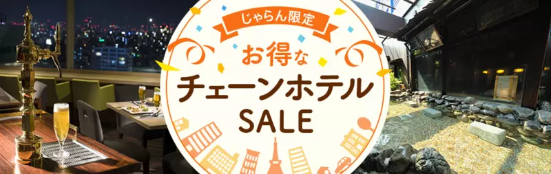 じゃらんには日本全国のチェーンホテルがお得に利用できるチェーンホテルSALEがあります。人気のホテルも対象になっているので、ぜひチェックしてみてください。