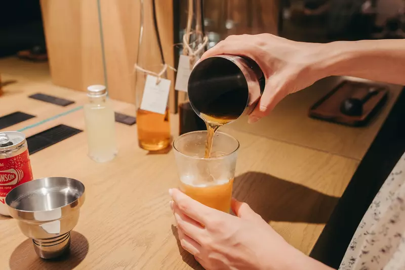 完成したカクテルをグラスに入れ、オリジナルの味を口にする。部屋でカクテルを作り静かに嗜む大人な時間の過ごし方ができるのも、GLAMDAY STYLEならではの体験だろう。
