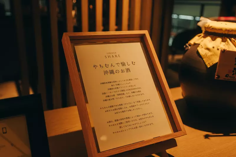 1日目の最後に訪れたのは、沖縄ならではの"やちむん"でお酒を愉しめるラウンジ「SHARE」。