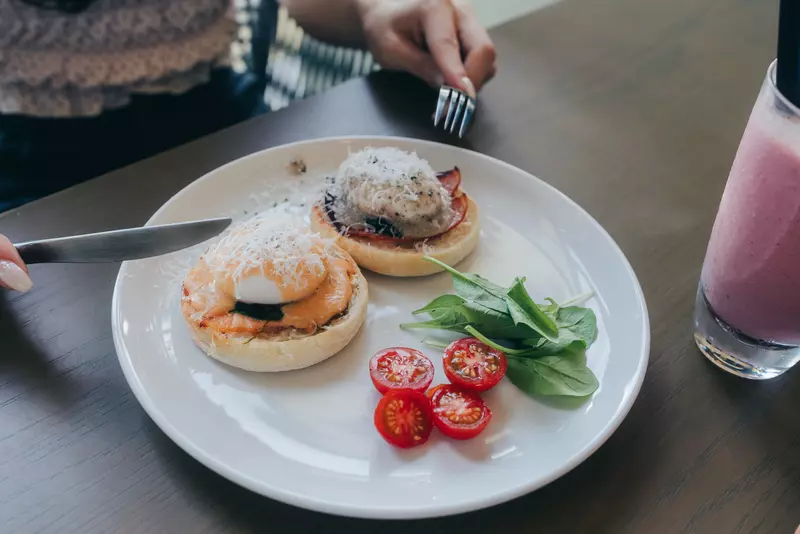 料理の見た目も美しく、味わいも格別だ。ビーツバナナスムージーの爽やかな甘さとエッグベネディクトの濃厚なソースが、朝のひとときを華やかに彩る。