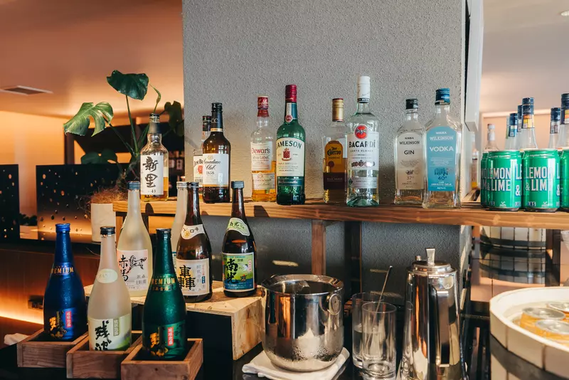 こちらのラウンジでは、オリオンビールやスパークリングワイン、リキュール、焼酎など、豊富な種類のお酒が揃っている。リキュールや割りものを組み合わせ、自分好みのお酒を作って嗜むのもおすすめだ。