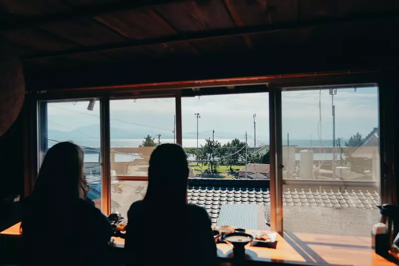 店内は島の食堂ならではのアットホームな雰囲気も魅力的。また、2Fからは湯島の海を一望しながら食事ができるので、絶景を眺めつつ、湯島の味覚を堪能する贅沢な時間が過ごせます。