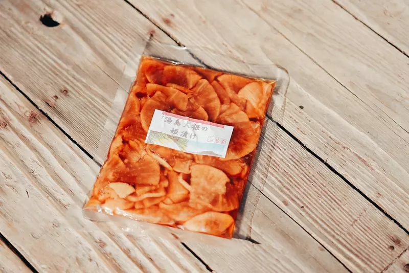 この姫漬けは、湯島大根の甘さと風味がぎゅっと詰まった逸品で、島の味覚をお土産として持ち帰れるのがうれしいポイント!