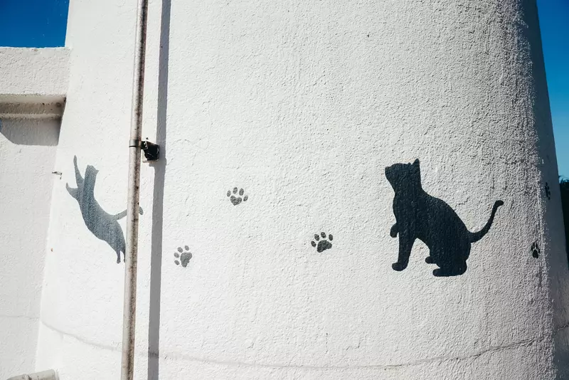 そして、灯台を目指して歩いていると、どこからともなく現れる猫たち。なんと、一緒に歩いてついてきてくれることも!
