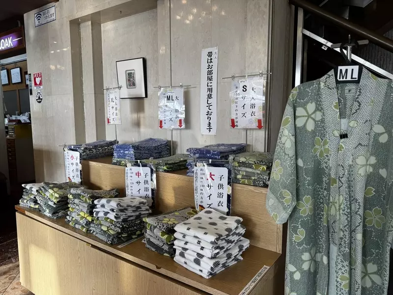 チェックイン後、レセプション横に浴衣が置いてあり、好みの浴衣が選べます(※2)。先に温泉に入るもよし、ご飯後に温泉に入るもよし!