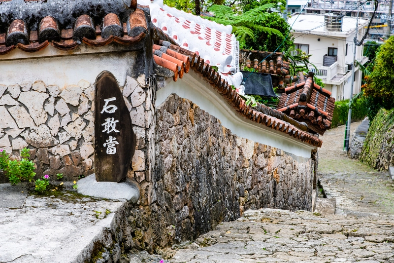 『首里金城町石畳道(しゅりきんじょうちょういしだたみみち)』は、琉球王朝時代の面影が色濃く残った石畳道。首里城の南側に位置し、16世紀に造られた(※)この石畳は、琉球石灰岩を用いた独特の曲線が特徴です。