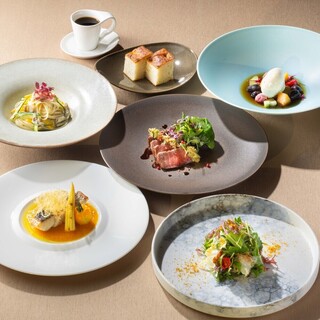 | 内容 | ・軽く炙った鰤のカルパッチョ ・自家製サルシッチャとポルチーニ茸のアーリオオーリオ ・アトランティックサーモンのソテー いくら添え ・US産牛フィレ肉の黒舞茸のグリル ・ドルチェ など | ・軽く炙った鰤のカルパッチョ ・名古屋コーチンとリコッタチーズのラビオリ ・生雲丹を纏った真鯛のソテー ・京鴨のアロースト 牛蒡と赤ワインのソース ・ドルチェ など | ・京鴨の冷製タリアータ ヴィンコットと柘榴と共に ・大黒本しめじとセージバターソース 黒トリュフ添え ・生雲丹を纏った真鯛のソテー 西京味噌と白ワインのソース ・宮崎牛サーロインのアロースト 季節野菜添え ソースペリグー ・ドルチェ など |