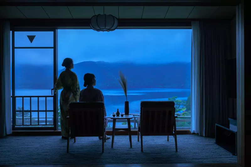 神奈川県箱根芦ノ湖畔のほとりにある『芦ノ湖畔蛸川温泉 龍宮殿』は、全客室から富士山と芦ノ湖が一望できる(※)純和風旅館。2024年の秋は、客室や露天風呂からお月見を楽しめるプランが登場します(※)。