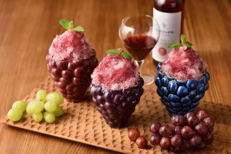 そんなこだわりのかき氷を、1つ1つ手作りの葡萄の陶器で頂く事ができます。