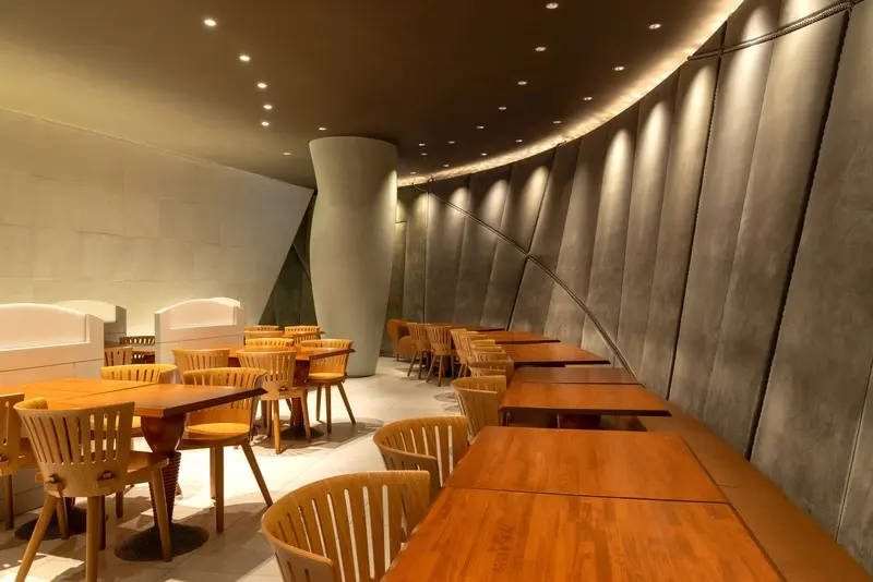 世界的に著名なデザイナー、フィリップ・スタルクが手がけた店内は、278席の広々とした開放感と洗練されたデザインが融合。(※)