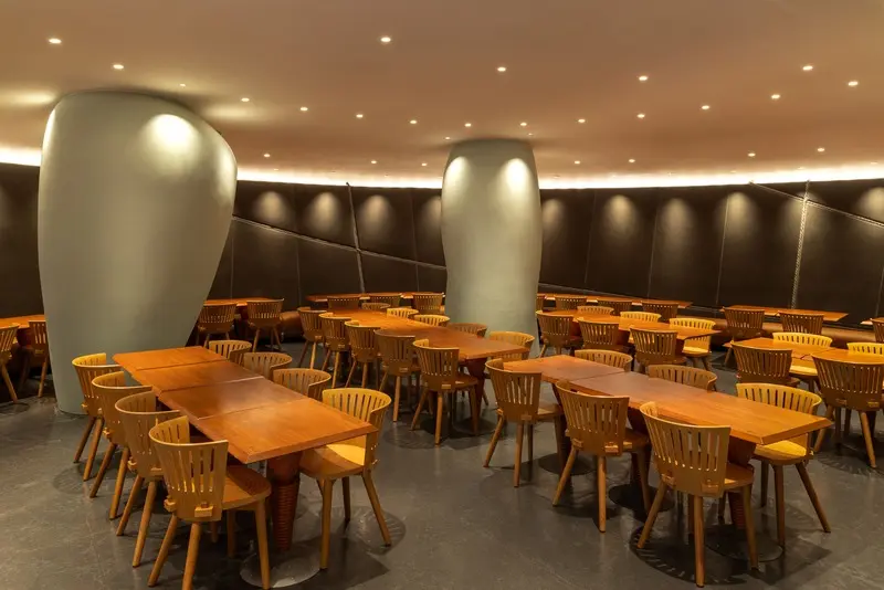 フラムドールの店内は、世界的デザイナーであるフィリップ・スタルクが手がけた、他では味わえない特別な空間です。278席という座席数を誇りながらも、天井の高い開放的な設計により、窮屈さを感じることなくゆったりと過ごせます。
