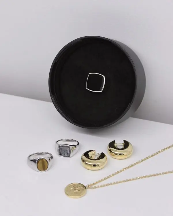 シルバーやゴールドをベースにした、ミニマルで洗練されたデザイン。