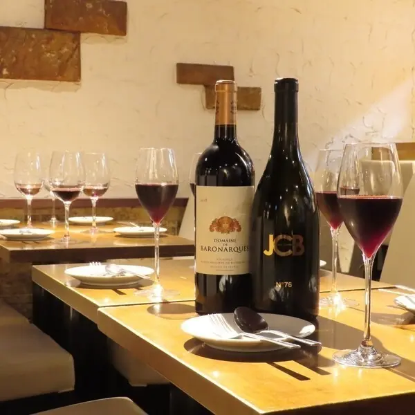 ワインは自然派を中心に、料理との相性を意識したラインアップ。赤白ともに、果実味を感じられるタイプからすっきりとした味わいまでそろっており、前菜からメインまで食事の流れに合わせて選べます。