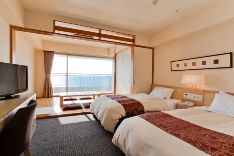 ホテルハーヴェスト 南紀田辺は、全客室がオーシャンビュー仕様となっており(※)、窓の向こうには田辺湾と太平洋が広がります。