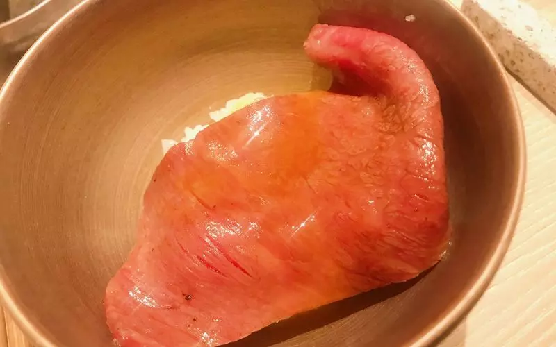 最初はお肉とご飯が別々に出されるのですが、店員さんがその場でお肉を焼いてご飯にくるくると巻き付けてくれるんです。その様子を見ているだけでよだれが出てきそう…(笑)