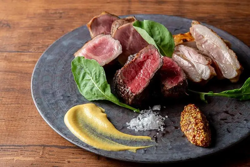単品では鴨むね肉や仔羊、国産牛などの炭火焼きも用意(※)。ワインと合わせてゆっくり食事を楽しめるメニューです。