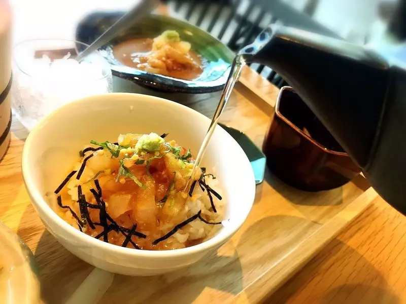 お店のイチオシは老舗料亭「日影茶屋」監修の「鯛茶漬け」。