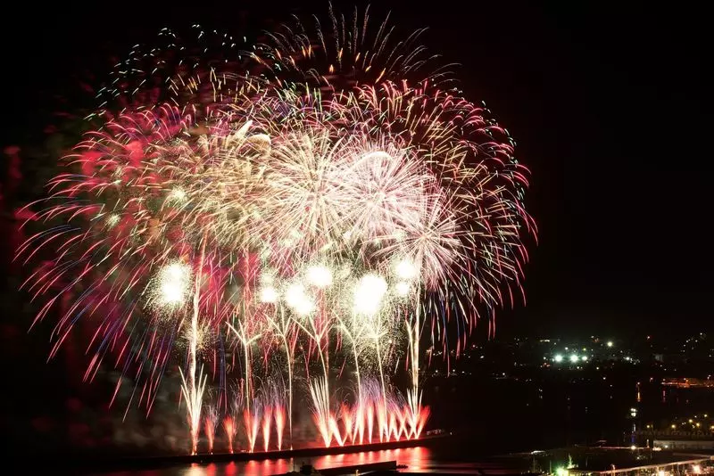 1時間に約10,000発、海上の5ヶ所から次々と打上げる迫力満点の花火大会☆