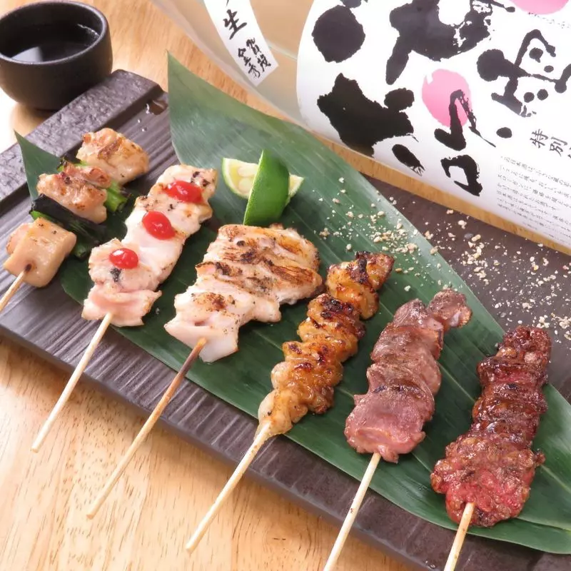 「肉料理 肉の寿司 okitaya 梅田東通り店」の焼き鳥は、備長炭で焼き上げる本格派。2本から注文可能なので、肉の寿司と一緒にお気軽にどうぞ◎