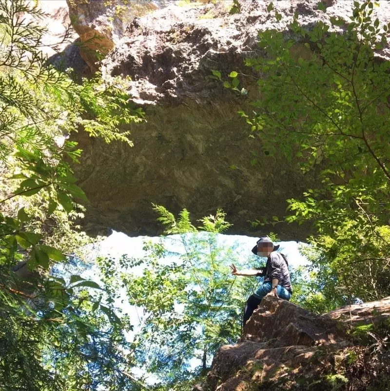 急な階段や険しい道を抜けると、真ん中にぽっかりと穴があいている大きな岩を発見!!そこから見える空や山が美しい!近くの岩場に登ってみると、素敵な写真が撮影できますよ♪
