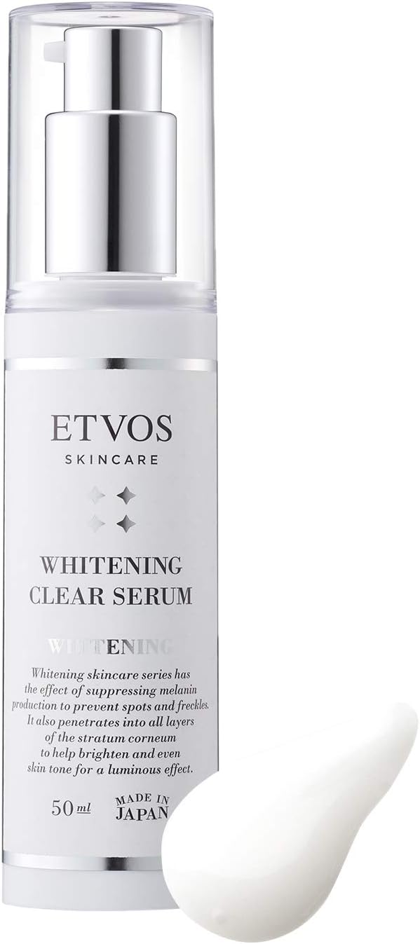 続いてご紹介するおすすめの美白美容液は、ETVOS(エトヴォス)「ホワイトニングクリアセラム」です。こちらは肌トラブルを防ぐ有効成分「グリチルレチン酸ステアリル」を配合しており、日焼けによるメラニンの生成を抑え、シミ・そばかすを防いでくれます。(※"ETVOS 公式HP"参照)