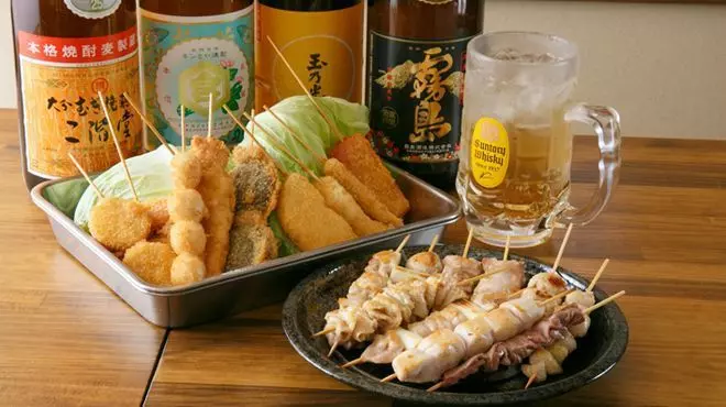 「安い・旨い・ボリューム満点」がそろった焼き鳥・串カツが自慢の居酒屋です。単品からバカ盛りシリーズなどメニューも豊富です。
