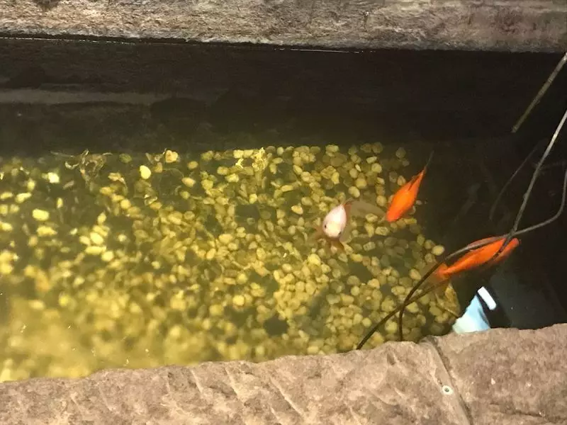 温泉を楽しんだら、いよいよお待ちかねの夕食の時間!夕食は本館の「和風レストラン さくら庵」で頂きます。「和風レストラン さくら庵」は静かで落ち着いた雰囲気のレストランでした。入口近くには金魚が泳いでいて風情を感じます◎