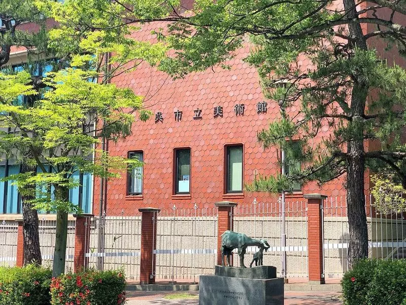 カフェの目の前にある赤レンガ敷きの美しい並木道は「日本の道100選」に選ばれており、道沿いには著名な作家の彫刻作品が18点あります。呉市美術館の外壁の六角レンガも珍しいですよね!(※"呉市"公式HP参照)