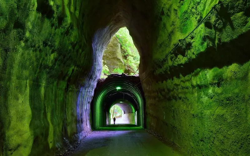 出口が2つあるんです。横に2つあるなら普通なのですが、このトンネルはなんと上下に2つ!2つの出口から光が差し込むので、時間帯や季節によっては幻想的な空間が広がります!またこのトンネルは、機械を使わずに掘ったんだとか…。ちょっぴり歴史を感じますね。