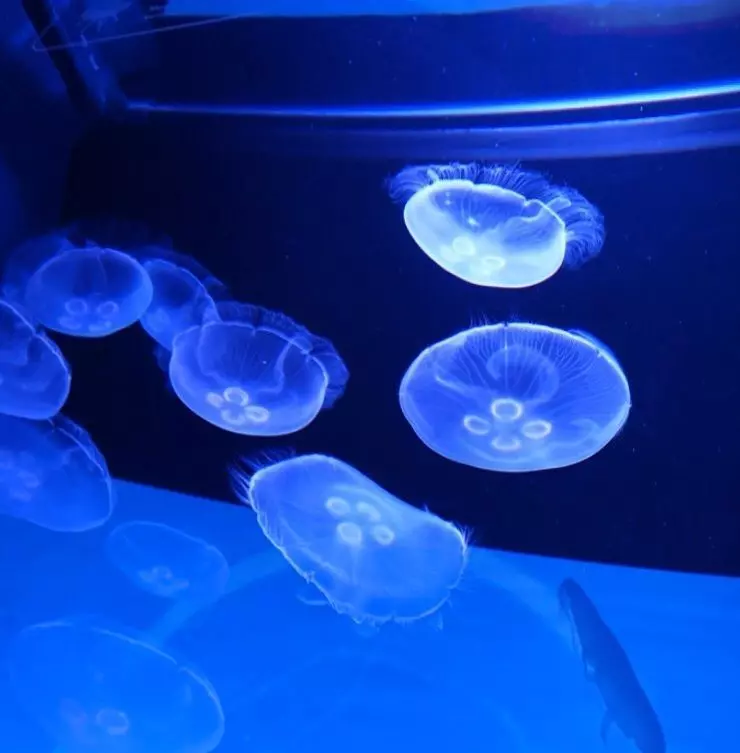 すみだ水族館といえばクラゲが有名です。ゆらゆらと水中に浮かぶクラゲは、眺めているだけで癒やされます。照明の色の変化に合わせてクラゲの色も変わり、見ていて飽きません。