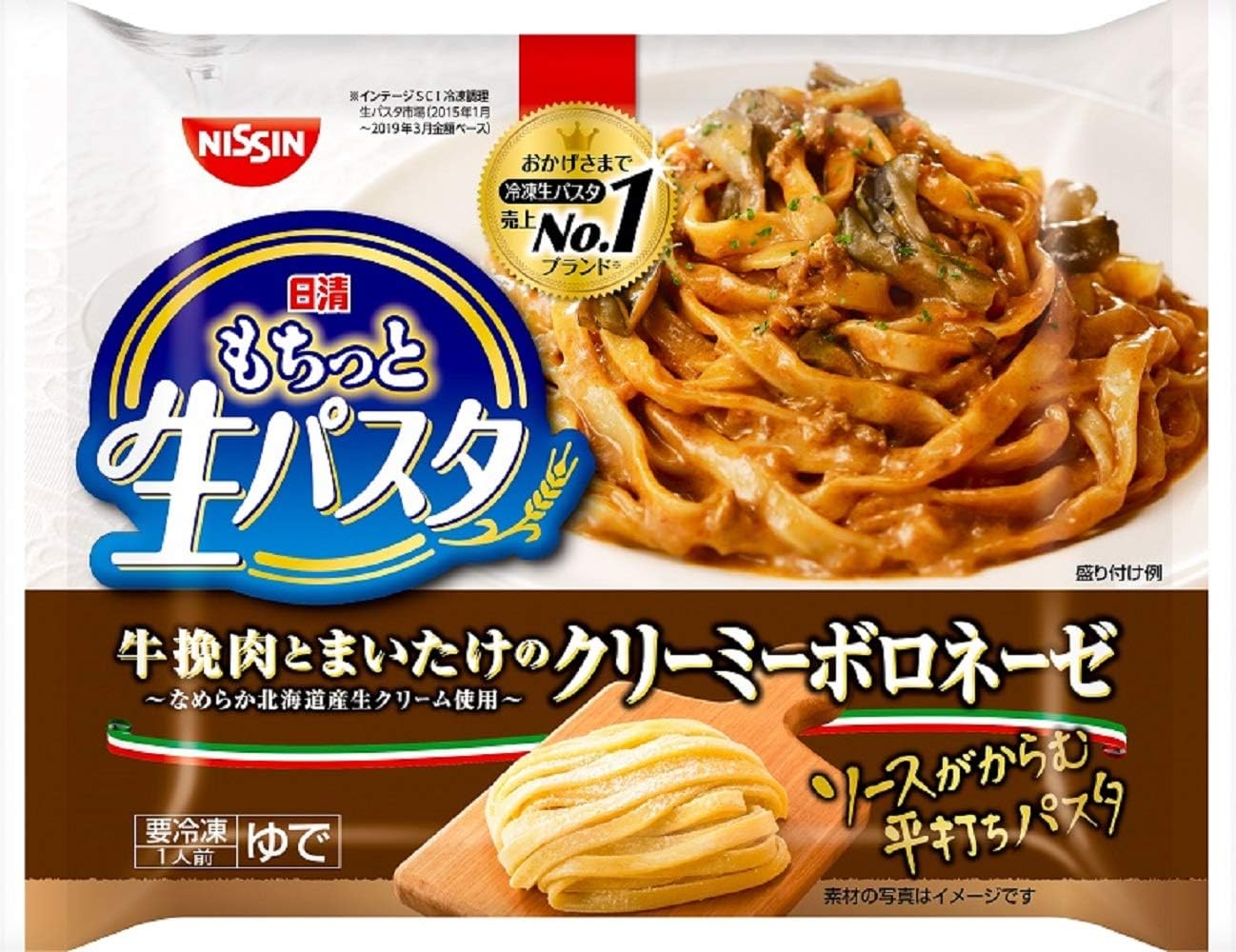 - 【麺類】7. 生パスタを堪能!おすすめの冷凍食品 「日清 もちっと生パスタ クリーミーボロネーゼ」