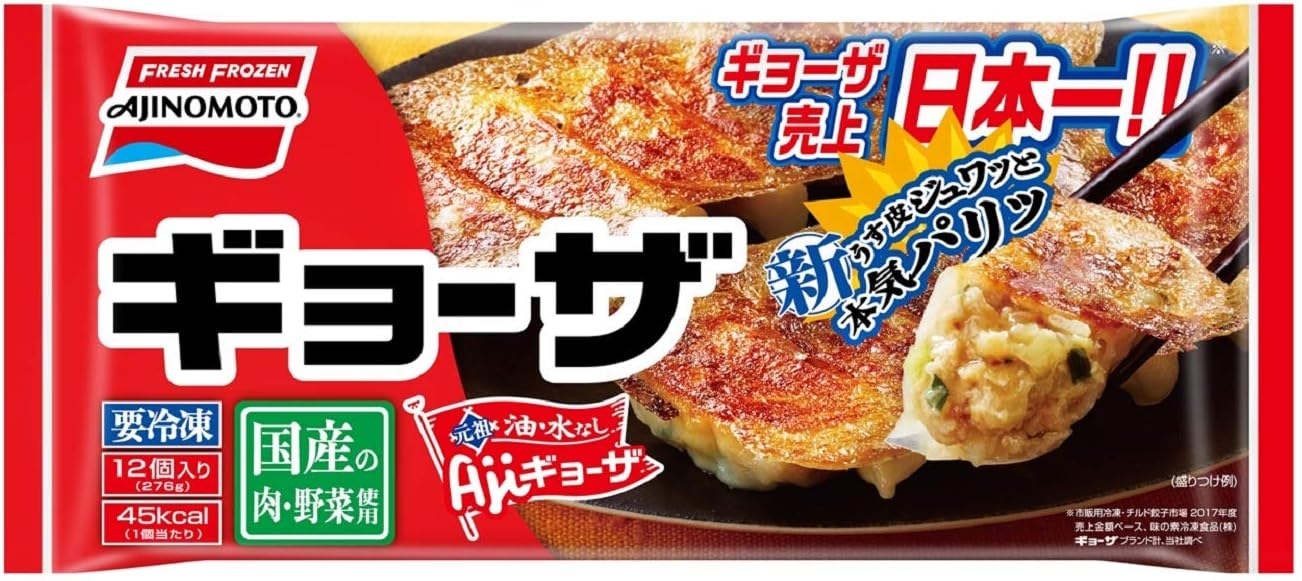 次にご紹介するおすすめの冷凍食品は「味の素 ギョーザ」です。こちらの冷凍食品はなんと油と水なしで調理可能。そして誰でも簡単に羽根つきのジューシーな餃子を作ることができます。
