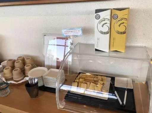 「伊勢外宮参道伊勢神泉」のロビーでは嬉しいことにコーヒーやジュースなどのドリンク類、カステラなどのお菓子類が用意されています!ホテルの利用者は基本的に無料で食べることができるので、休憩したいときはロビーでくつろぐのもアリです◎