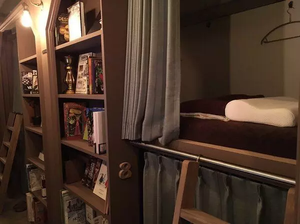 写真は本棚のすぐ近くにあるドミトリー。周りはたくさんの本に囲まれ、心地良い空間となっています。まるで秘密基地のような雰囲気ですよね♪