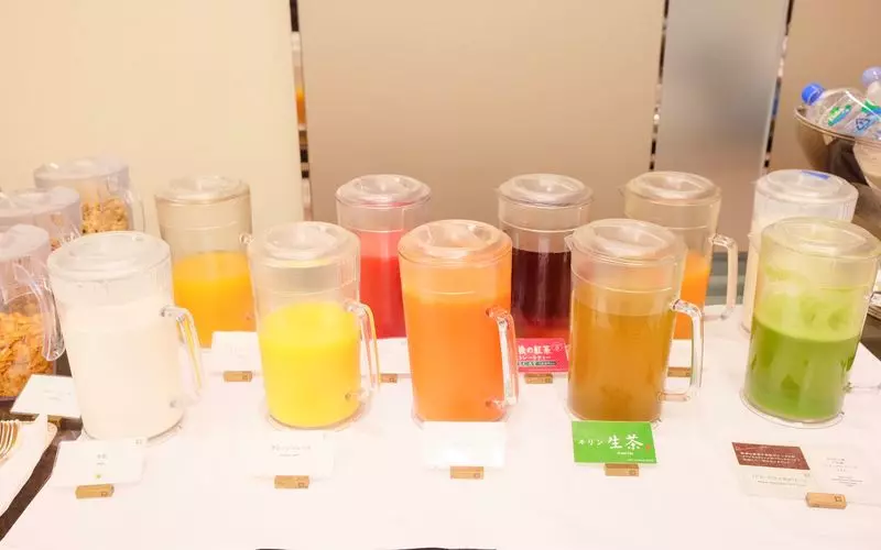 どれを飲もうか迷うほど、よりどりみどりなドリンクコーナー。この他、ヤクルトやホットの紅茶やコーヒーなどもありました。