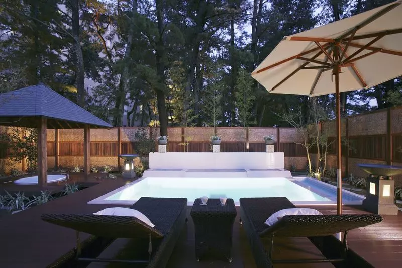 独立した120平米のお部屋(※「別邸 ラ・松廬」公式HP参照)に露天風呂やプールが付いているという、まるで海外の高級リゾートのような客室。