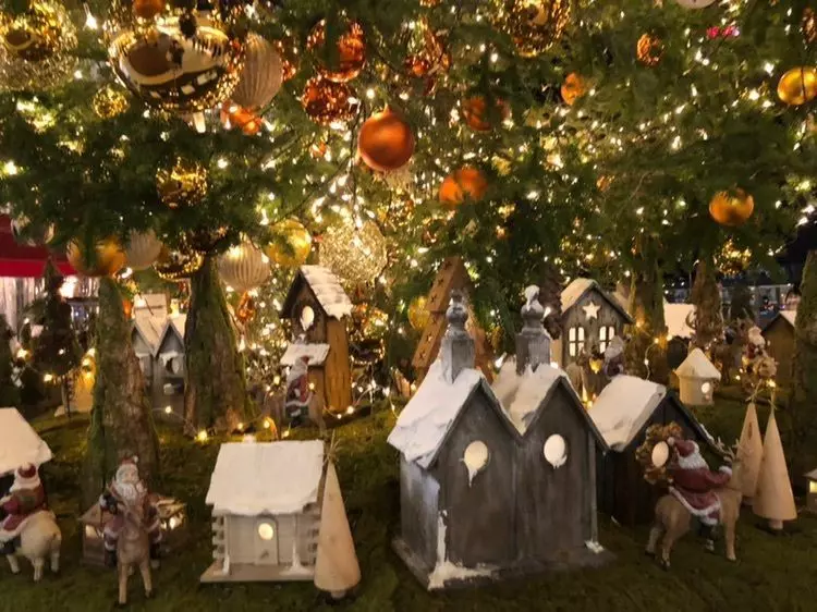 ツリーの根元には、ミニチュアハウスで出来た フォトジェニックな サンタクロースタウンの街並みが広がります
