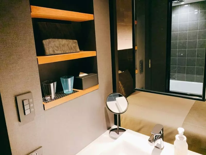 一見お部屋にはモノが置かれず、シンプルに統一されていますが、計算された収納により様々なアメニティが用意されていました♡お泊まりセット(クレンジング、洗顔、化粧水、乳液)や、綿棒、コットン&ヘアゴム、歯磨きセットも!手ぶらでも、気軽に宿泊できちゃうのがいいですね♡