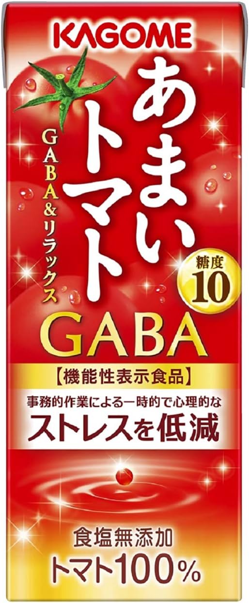 次にご紹介するおすすめトマトジュースは、カゴメの「あまいトマトGABA&リラックス」。こちらも名前の通り、GABAが豊富に含まれている機能性表示食品です。