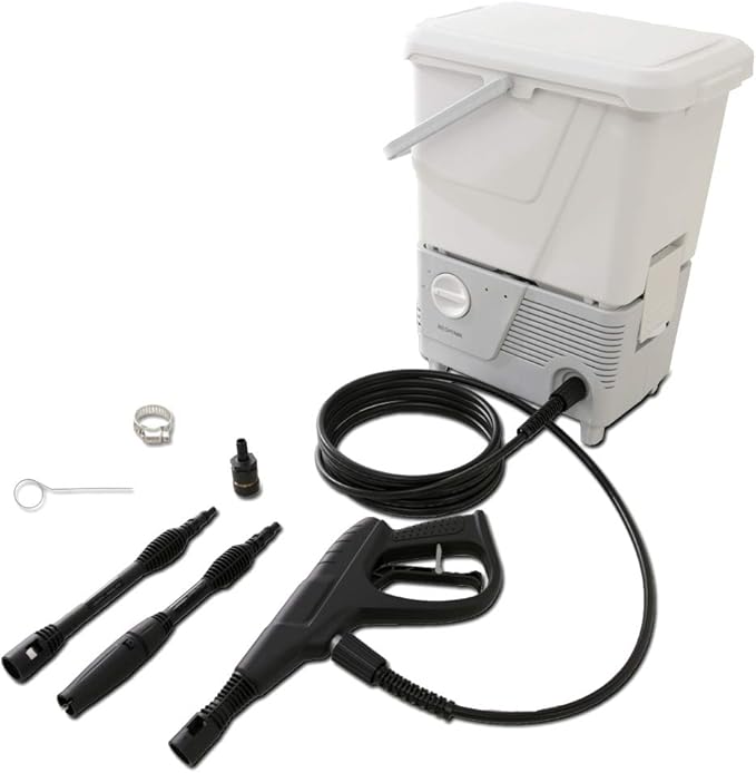 こちらも水冷式静音タイプの高圧洗浄機です。先ほど紹介したK2サイレントとの違いは洗剤用のタンクが付いていること。洗剤を使うこともできるので、水だけでは落ちない汚れをも落としたい場合はこちらの商品を購入するのをおすすめします。しかし、このタンクが付くので持ち運びには適していません。置いて使用するタイプの高圧洗浄機になります。
