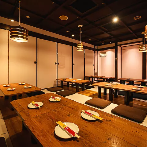 すべての部屋が掘りごたつ式の個室となっており、2名から最大16名まで利用可能(※)。静かな環境でゆったりと過ごせるので、デートや接待、特別な集まりにも最適です。