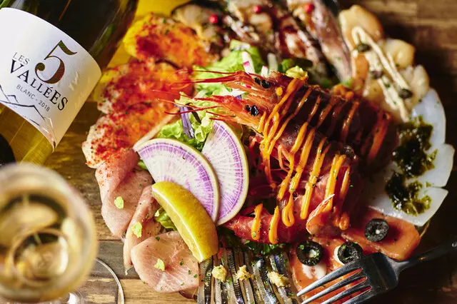 次にご紹介する横浜でおすすめのおしゃれな居酒屋は、各線横浜駅きた西口より徒歩約5分のところにある『Seafood bar Ermitage 横浜鶴屋町店』。2022年9月オープンのイタリアンバルで、薪焼き料理、牡蠣、雲丹などを使ったイタリアンを食べられます。